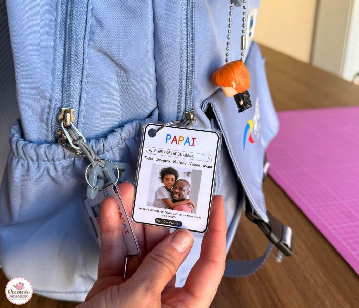 Com visual inspirado nas buscas do Google, o cartão permite que a criança desenhe, escreva ou cole uma foto, criando uma lembrança única e emocionante.