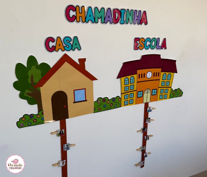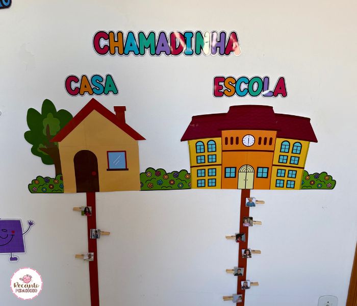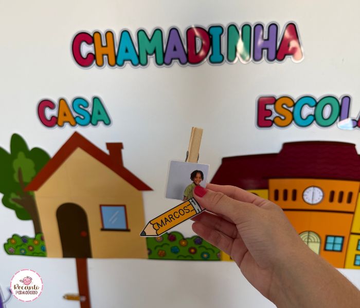 Com um painel amplo, a criança participa ativamente da chegada, colocando seu lápis/foto no lado ESCOLA — e quem não veio permanece no lado CASA. Uma proposta simples, mas poderosa, para tornar a rotina significativa!